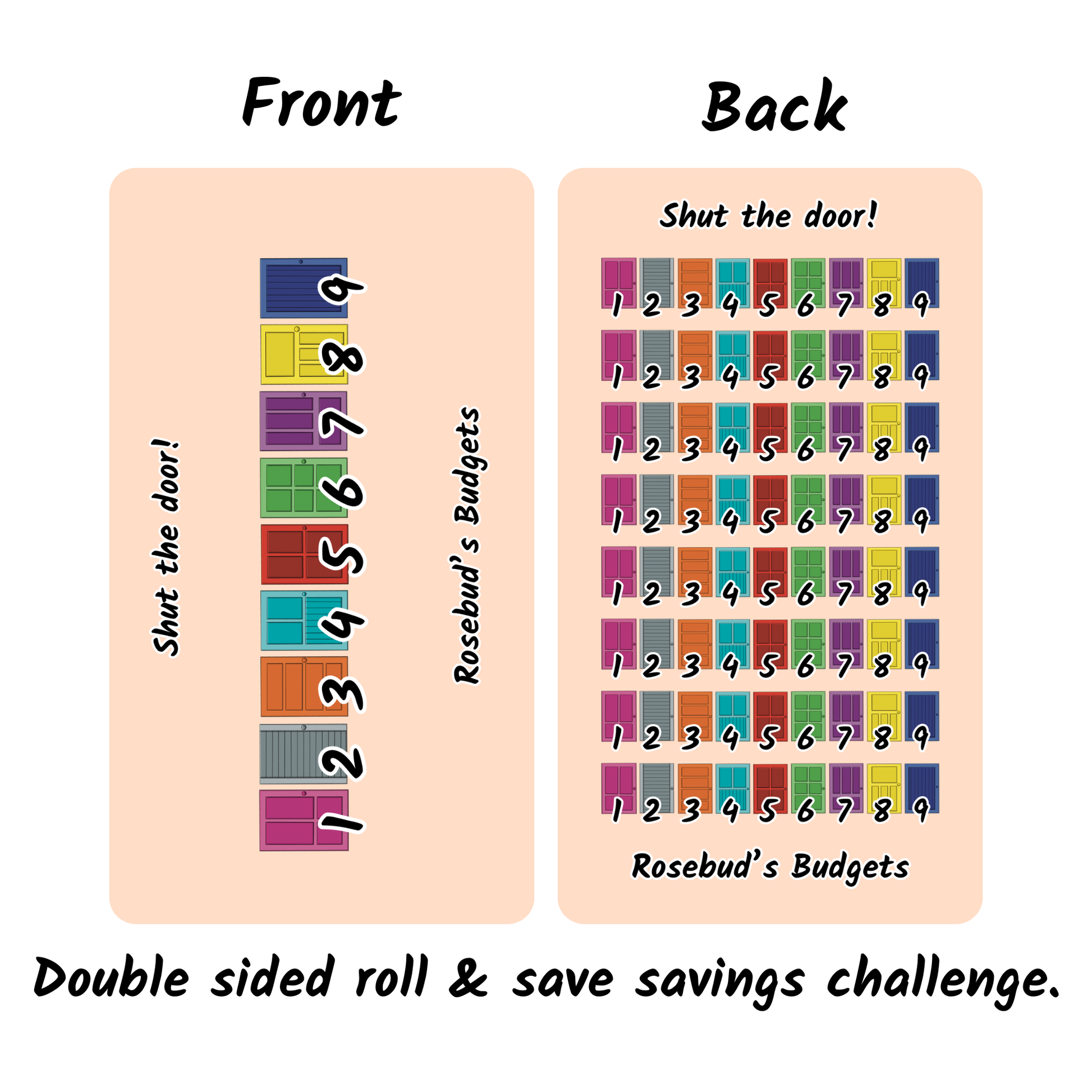 Start by rolling two dice and if you can cross off the amount rolled do so, then repeat until you can not cross any more. What ever you can't cross off you save and if you cross off them all you have shut the door!!!!! Happy savings. How much will you save with this challenge?