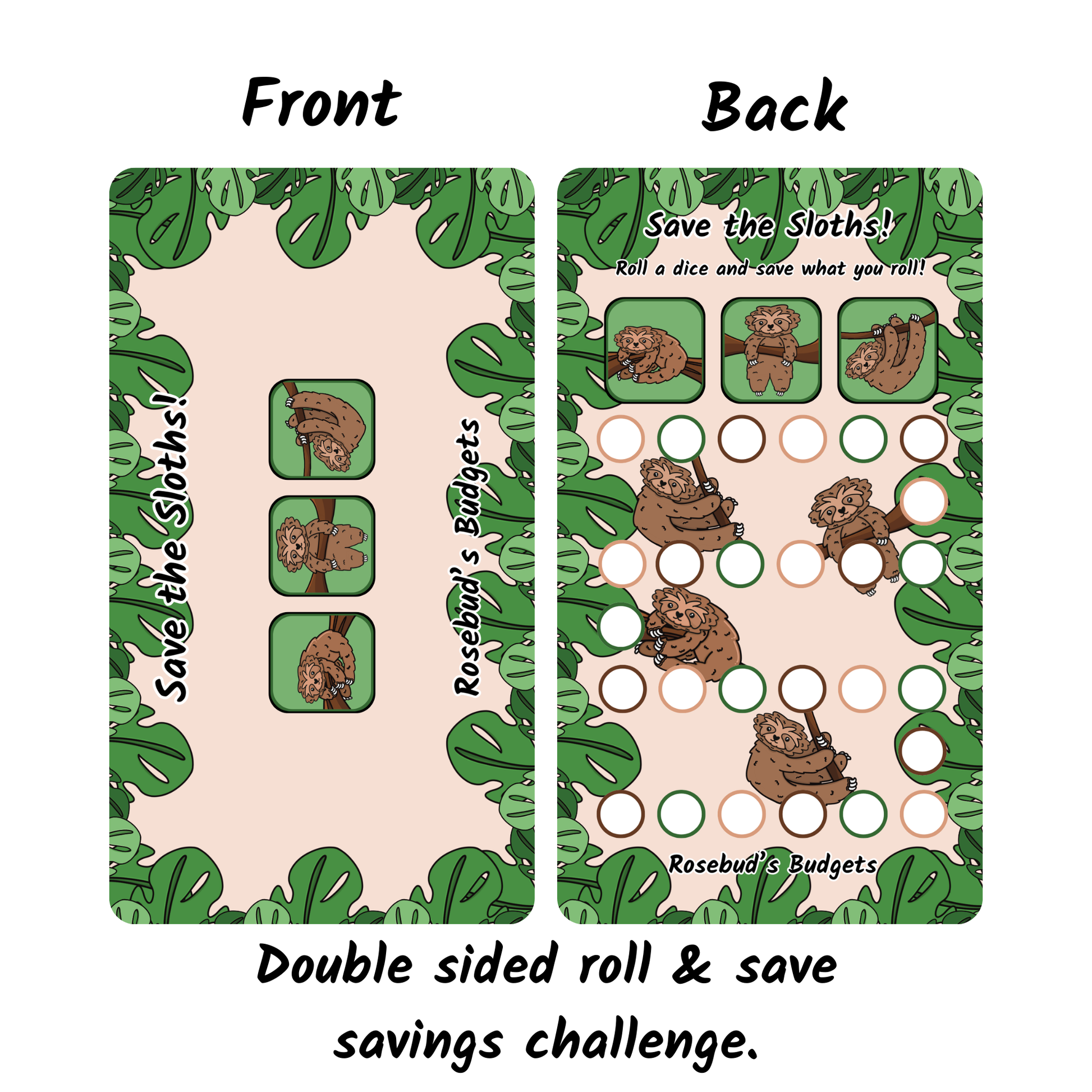 This listing is for the "Sloth" Collection. A full collection of 4 Sloth themed double sided, dash & challenges.